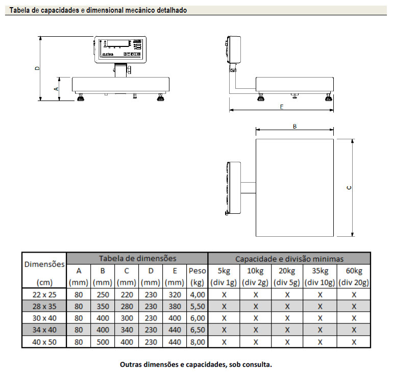 | Capacidade Nominal | 5kg / 60kg |