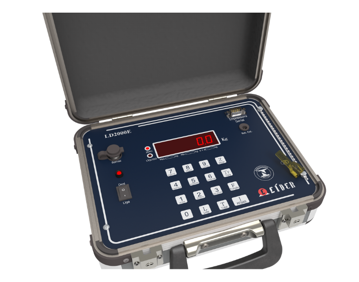 Pintado com tinta epóxi, garantindo alta resistência à oxidação, quando utilizada em ambientes adversos. A Maleta LD2000E são sistemas eletrônicos micro processados, com display de LED de seis dígitos, 10.000 divisões configuráveis, estrutura em alumínio e conexão com as barras de pesagem através cabos blindados. O modelo LD2000E conta com um software interno específico para armazenamento de dados de animais, como ID do animal, dados da fazenda, do pecuarista e outros, onde é possível posteriormente emitir relatórios com até as últimas 10.000 pesagens, podendo estes ser impresso via porta de comunicação RS232 ou exportados para o computador através de arquivo do Microsoft Excel. A maleta conta também com diversas outras funções de software que auxiliam nas mais diversas aplicações de pesagem de gado.