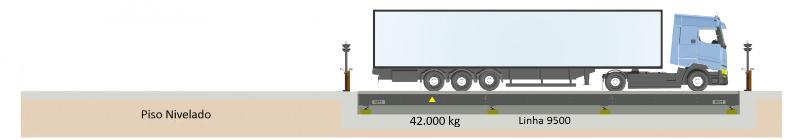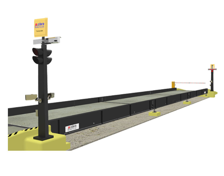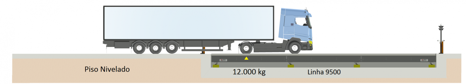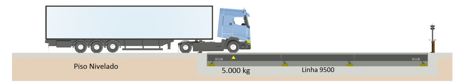 O sistema de pesagem identifica o peso do primeiro eixo e os demais sucessivamente através de pesagem dinâmica.