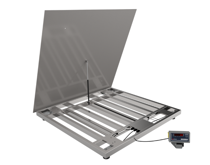 Balança de Plataforma Higienizável B650H com a plataforma basculante para lavagem, indicada para locais higienizados tais como frigoríficos, indústrias alimentícias e químicas.