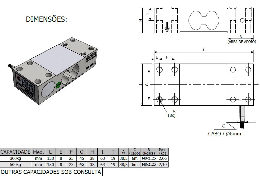 Célula de Carga PLB capacidade 300kg a 500kg obedecem rigorosos padrões de qualidade, são células de carga robustas fabricadas em aço liga de alta performance.