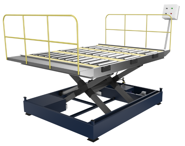 As Plataformas elevatórias são sistemas eletro hidráulico mecânicos, dedicados a elevação e transporte de carga no sentido vertical e horizontal, é fornecida com estrutura em aço carbono com roletes rolamentados, ideal para serem utilizadas em aeroportos, armazéns, depósitos, estoques, almoxarifados e locais semelhantes.