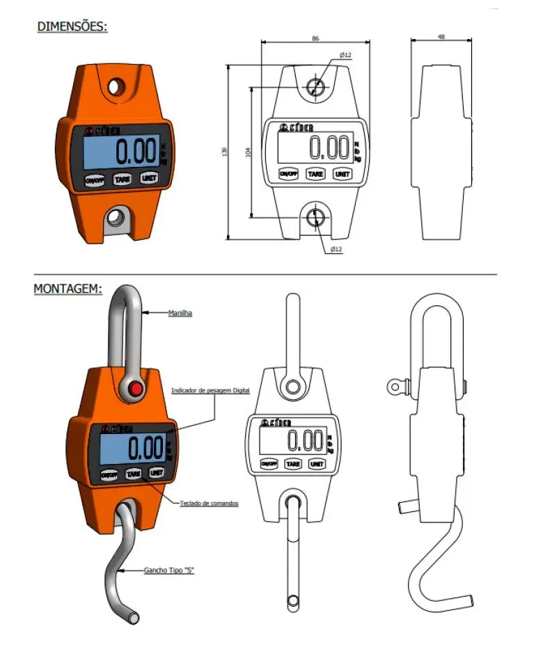 - Teclado para calibração e entrada de dados, como tara, zero manual, tecla de função e imprimir.