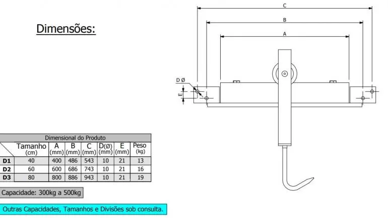 - Fabricado em aço carbono com tratamento de superfície galvanizada ou aço inoxidável.