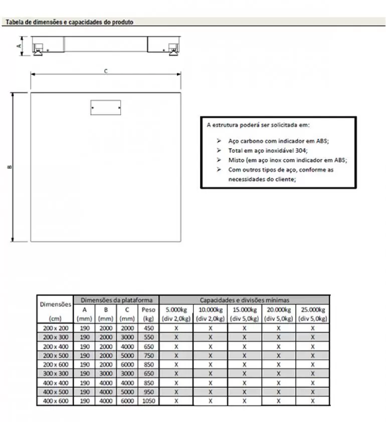 Balanças de Plataforma Com Pé Articulado B720 capacidade 5000kg a 25000kg