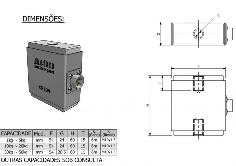 Célula de Carga CS-N capacidade de 1kg a 50kg