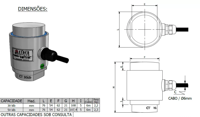 A célula de carga CT capacidade 30klb a 50klb é projetadas obedecendo os mais altos critérios de precisão, uma células de carga robustas e pode ser utilizada nas mais variadas aplicações. São ideais para sistema embarcado como vagões forrageiros, caminhão de silagem e outras aplicações de pesagem rodoviárias.