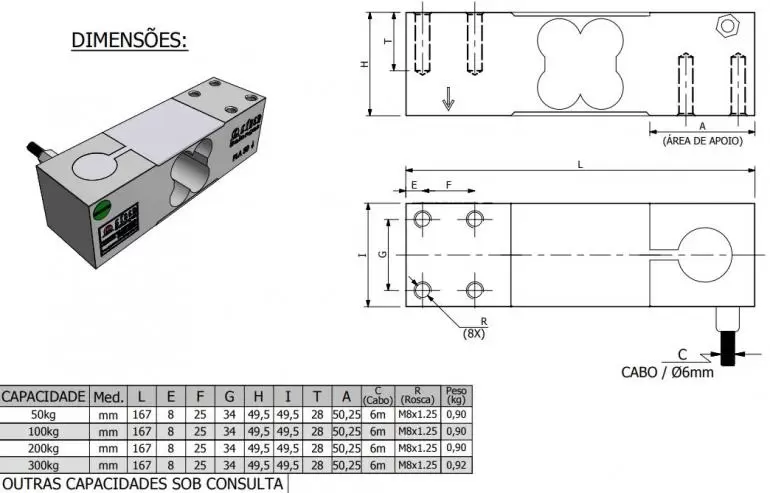 Célula de Carga PLA capacidade 50kg a 300kg