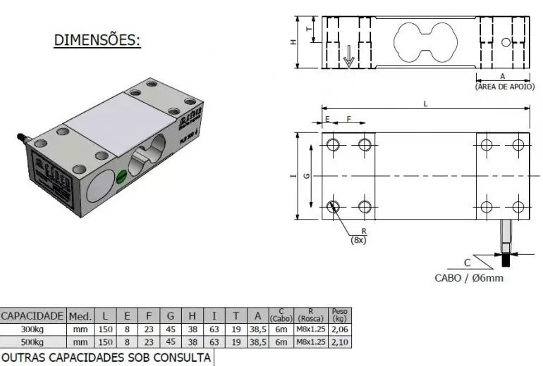 Célula de Carga PLB capacidade 300kg a 500kg obedecem rigorosos padrões de qualidade, são células de carga robustas fabricadas em aço liga de alta performance.