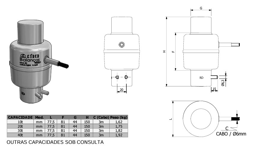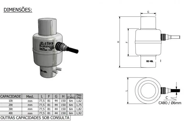 Célula de Carga RDa capacidade 10T a 40T da Líder Balanças são produzidas em aço inoxidável soldadas a laser com polimento eletrolítico, eliminando totalmente a possibilidade de corrosão,