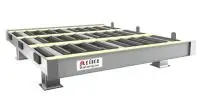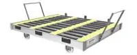 Mesa de Roletes formada por quatro vigas longitudinais de chapa dobrada em “U” dupla xadrez, onde se apóiam tres linhas de roletes e 02 vigas externas de chapa dobrada em “U” para guia de carga, sobressaindo de 20 a 30 mm acima da superfície dos roletes.