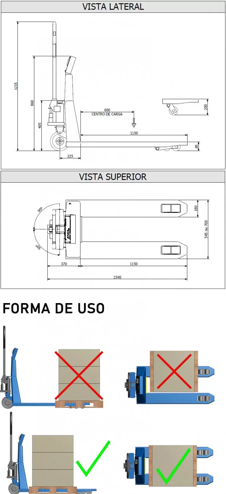- Indicador digital integrado ao carrinho transpalete.